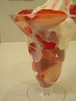 練乳イチゴパフェ、イチゴがフリーズ状態でシャキシャキ潰して食べるとウマイ♪