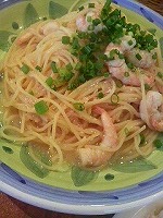 今日は小エビのパスタとデザートはティラミスでした。