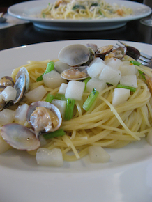 パスタはアサリとカブのペペロンチーノ。